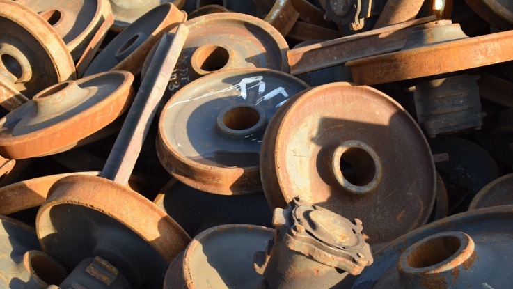 Alte Bahnschienen, zugeschnitten auf 1,5 m und weniger, Schienenteile und -elemente.
